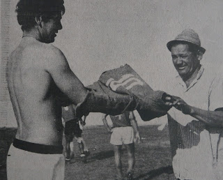 Animaron todo un clásico. Fueron compañeros en Juan Aurich pero después rivales. Pero lo más resaltante es que ambos tenían el mismo "vielo" y eso encandilaba a los hinchas, disfrutando de sus enfrentamientos en la cancha: Augusto "Perrito" Vílchez, el invencible marcapunta del Ciclón, y el habilidoso y cargoso alero Nemesio Mosquera, entonces en Deportivo Municipal. La foto de 1970 traerá muchos recuerdos a los aficionados que los vieron enfrentarse en el verde en un auténtico duelo de gigantes...
